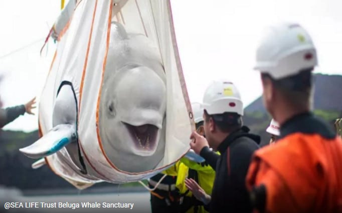 As duas belugas estão de excelente saúde, se alimentam e estão reagindo muito bem. “Esta é a primeira vez que Little Grey e Little White voltaram ao mar desde que foram retirados de um centro de pesquisa de baleias na Rússia em 2011. Agora, eles permanecem sob observação graças a uma equipe de veterinários e especialistas e esperamos liberá-los em breve.” diz Andy Bool, chefe do Sea Life Trust.