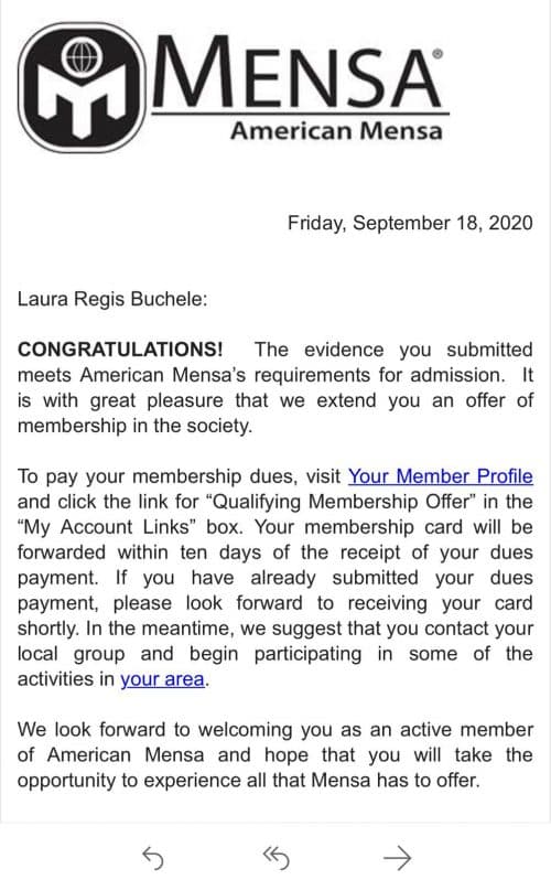Laura começou a participar de campeonatos na escola e em setembro entrou para o MENSA internacional — a maior, mais antiga e mais famosa sociedade de alto QI do mundo.