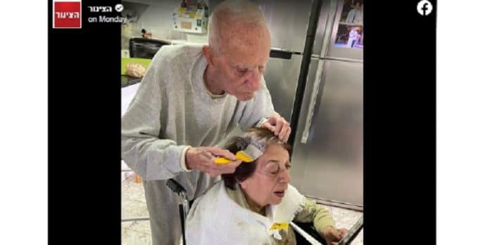 Junto com essa mensagem, ele compartilhou a fotografia em que seu avô é visto enquanto pinta o cabelo dela, que ao mesmo tempo se olha no espelho, para verificar se tudo sai bem. Esse par de velhos israelitas compartilhou a vida inteira e, obviamente, nessas circunstâncias adversas, eles estavam mais próximos do que nunca.
