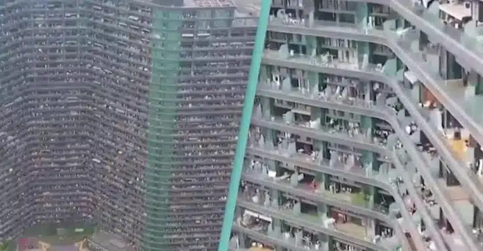 Com cerca de 260 mil metros quadrados de área e uma altura de 206 metros, ele não é apenas um prédio imponente, mas uma comunidade completa, onde 20 mil pessoas vivem sem precisar sair de casa para resolver suas necessidades diárias.