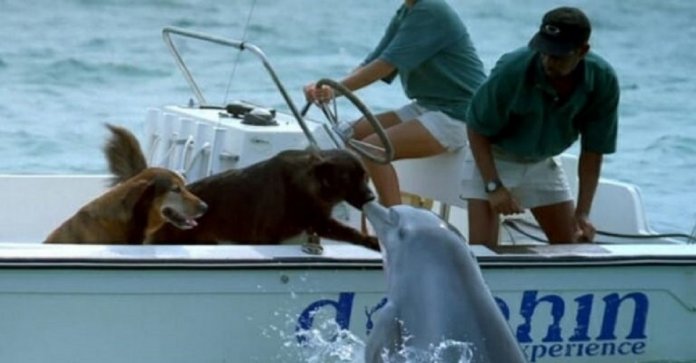 Dois cãezinhos que navegavam com os seus donos foram surpreendidos por um golfinho, interessado em fazer amizade. O encontro inusitado foi filmado e a amizade entre eles, selada com um beijinho, viralizou nas redes sociais.