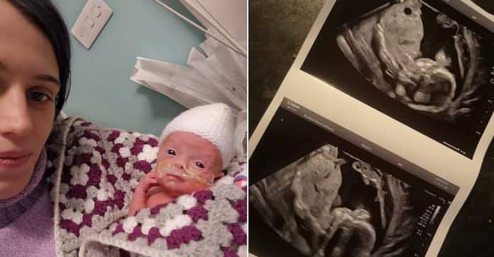 Hannah Cole, 27, foi internada no Bradford Royal Infirmary (BRI), na Inglaterra, depois que sua bolsa estourou prematuramente, com 20 semanas de gestação.