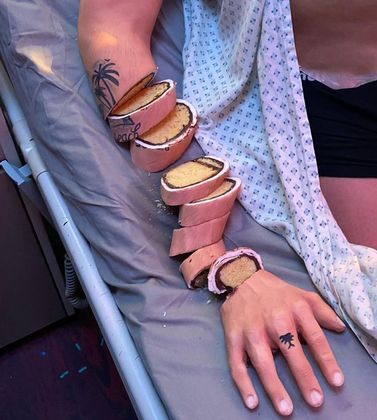 A criação do Bake King teve um motivo especial, inclusive. O bolo foi parte do videoclipe da música Feel Away, do rapper britânico Slowthai. Mas, cá entre nós: não dá pra comer esse bolo após ver a imagem não é mesmo?