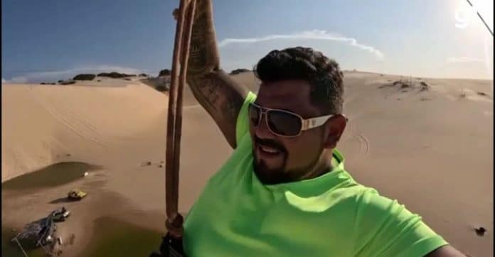 No vídeo liberado à imprensa na última terça-feira (25), Sergio é visto empolgado, descendo na tirolesa montada entre dunas do litoral cearense.