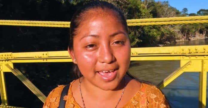 A menina trabalha na cidade de Semuc Champey , parque nacional deste país conhecido por seus diversos atrativos para caminhadas , conhecer rios , cachoeiras e para se conectar com a natureza em geral. Encontra-se especificamente na ponte amarela, sobre o rio Cahabón.