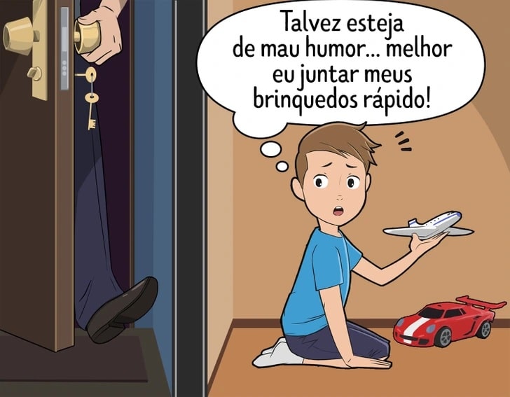 Pais que misturam medo com amor geram insegurança emocional nos filhos, que não sabem como reagir a mudanças repentinas de humor e atitudes dos pais. Esse comportamento faz com que as crianças se tornem hipervigilantes, aprendendo a interpretar o som das chaves na porta para prever o humor dos pais.