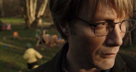 Lucas (Mads Mikkelsen) é um homem bom, adorado por seu filho e seus alunos, incapaz de cometer atos tão cruéis. Somos levados então a um calvário pessoal, onde progressivamente todos os membros da comunidade passam a duvidar de sua inocência. Nenhuma chance é dada a ele, pois todas as famílias da região agarram-se ao inconsciente coletivo do pavor, temendo que ele se aproxime de suas crianças. O leitmotiv da confiança é explorado até o brilhante desfecho, onde o roteiro ainda inclui uma poderosa crítica social e religiosa. O simples benefício da dúvida já seria o suficiente para auxiliar no processo angustiante em que o protagonista se vê vitimado, mas a mensagem que o filme aborda é cruel em sua veracidade: a sociedade, desde o início dos tempos, sempre esteve propensa ao apedrejamento coletivo, algo que requer menos argumentação que a árdua tarefa de tentar enxergar a flor no lodo.