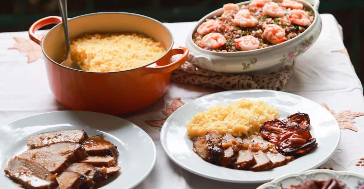 Rodrigo Isaias, do Benedita Cozinha, apostou em pratos tradicionais com um toque de criatividade. O destaque fica por conta do pernil assado com cebolas caramelizadas, uma carne macia e cheia de sabor. Para acompanhar, ele sugere um tabule com ingredientes acessíveis, arroz de gemas e parmesão e, para adoçar a noite, uma rabanada reinventada, servida em uma deliciosa calda caseira. Simples de preparar, essa ceia alia tradição e custo-benefício.