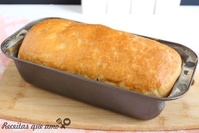 Transfira para uma forma untada a enfarinha com a emenda virada para baixo e deixe descansar por mais 30 minutos para que a fermentação recomece, a forma que usei tem 21cm x 11cm.