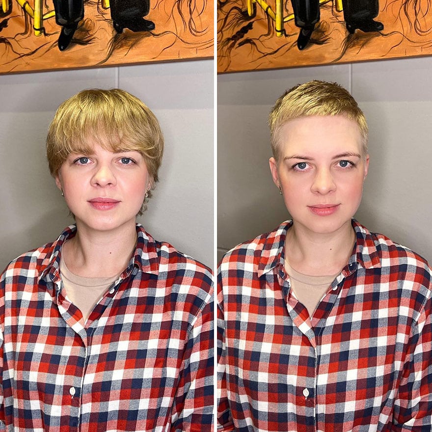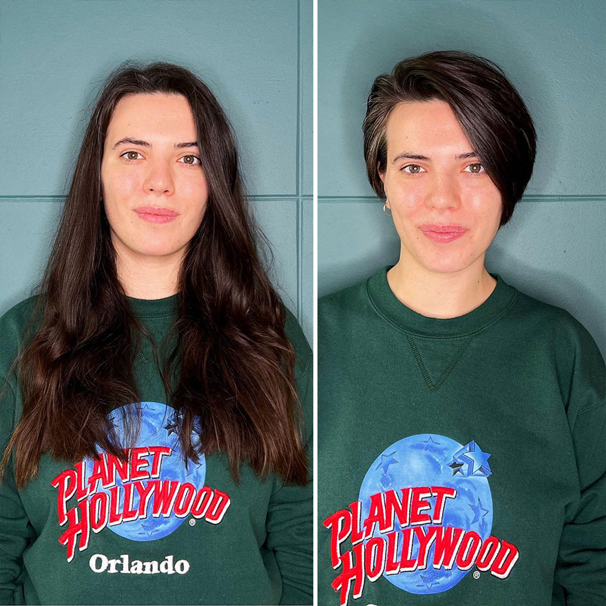 Ser uma versão de si mesma que a sociedade aceita não é sua responsabilidade, e é exatamente por isso que a cabeleireira Kristina Katsabina se encarrega de dar a suas clientes penteados curtos com base em suas preferências e estilo.