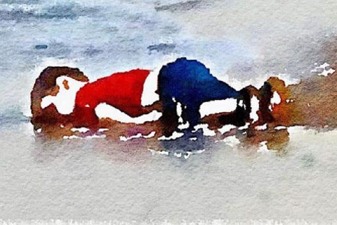 Ele, um sírio de etnia curda, em uma camisa vermelha e shorts, foi fotografado morto em uma praia turca em 2 de setembro de 2015 e a imagem de partir o coração – de bruços na areia – chocou o mundo inteiro (ou assim parecia) .