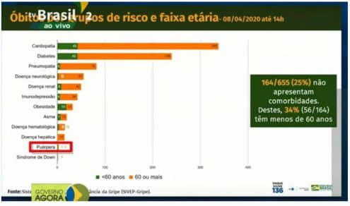 Um gráfico já incluindo puérperas no grupo de risco foi utilizado numa coletiva de imprensa da última quarta-feira (8):