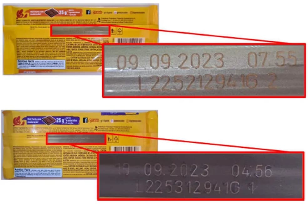 Caso o consumidor tenha adquirido tabletes de 80 g dos sabores “Castanhas de Caju” ou “Castanhas de Caju e Uvas Passas” da marca, recomenda-se verificar o lote do produto no verso do rótulo, próximo ao lacre. Veja imagem abaixo: