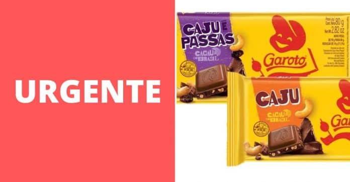 Os produtos citados são os tabletes/barras de chocolate de 80 g sabor chocolate ao leite com Castanhas de Caju e chocolate ao leite com Castanhas de Caju e Uvas Passas.
