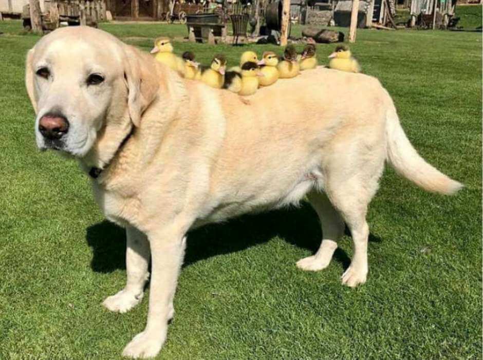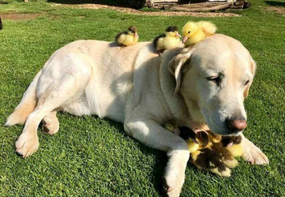 Um cão labrador chamado Fred causou encantamento nas redes sociais ao “adotar” 9 patinhos cuja mãe teria sumido. Os filhotes foram resgatados por uma ONG Mountfitchet Castle, que já cuidava de Fred.