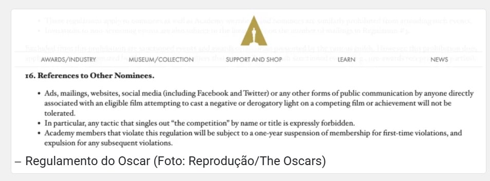 O comentário rapidamente se espalhou, levantando dúvidas sobre possível violação das diretrizes da Academia, que proíbem qualquer nomeado de denegrir publicamente seus concorrentes.