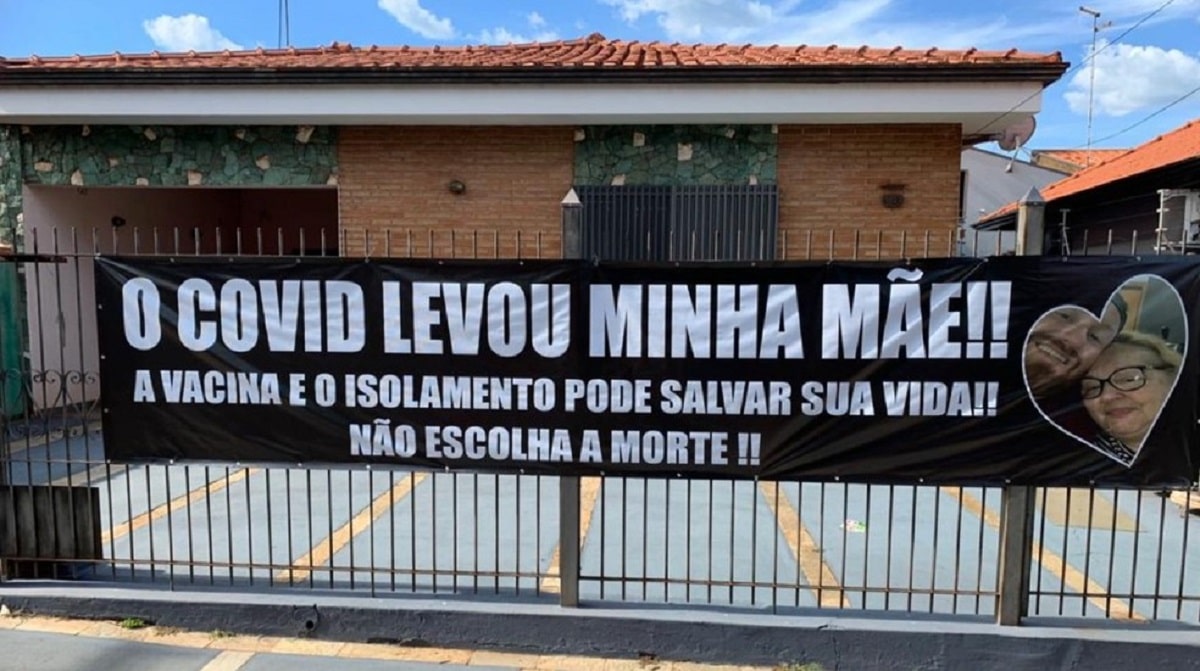 Um morador de Guariba, interior de São Paulo, fez uma faixa no mínimo emocionante para buscar incentivar a vacinação contra COVID. Após perder a mãe, o apelo é quase como um desabafo: “Covid levou minha mãe! A vacina e o isolamento podem salvar sua vida! Não escolha a morte!”.
