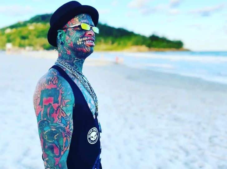A partir de então ele não parou e em alguns anos todo o seu corpo já estava quase completamente coberto por tatuagens. Na verdade, ele tem desenhos até nos globos oculares e as gengivas.