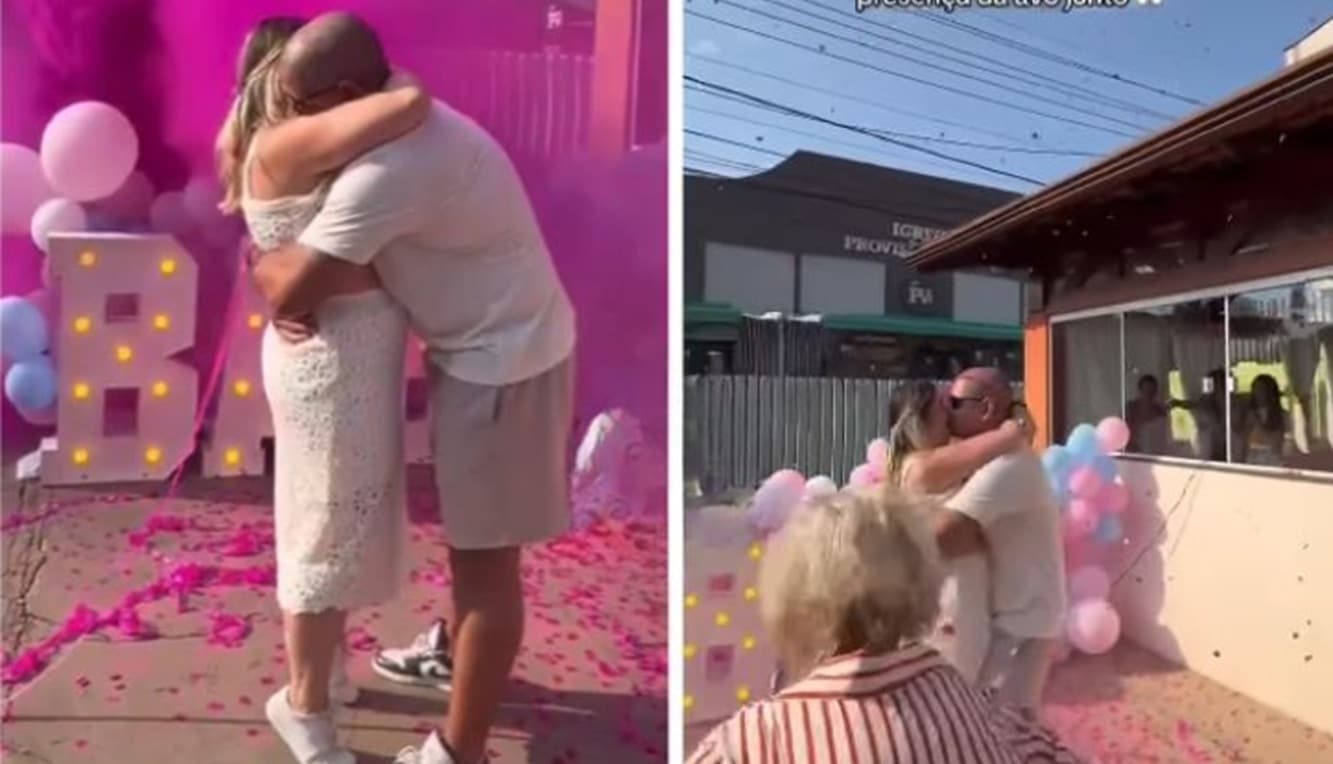 O vídeo, publicado nas últimas 24 horas, ultrapassou 390 mil curtidas e somou mais de 20 mil comentários. A gravação mostra o casal no centro do cenário, pronto para estourar a revelação — era uma menina — quando a avó se empolga e tenta se aproximar antes do “valendo”.