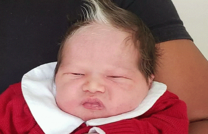 Teo acaba de nascer: está no oitavo dia de vida e já ganha holofotes da mídia nacional. Ocorre que o bebê, nascido no Dia dos Pais, em Belo Horizonte, tem uma pequenina mancha branca em seu cabelo. Esse detalhe fez com que as redes sociais se ativessem à beleza do recém-nascido.