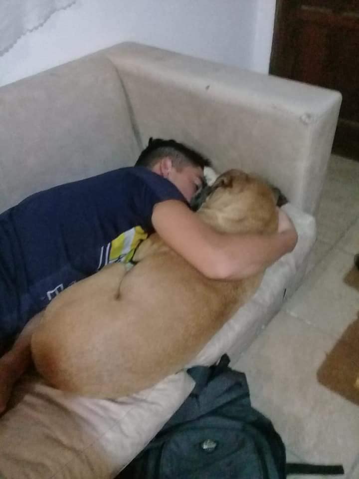 Fotos de um momento muito triste, recheado grande pânico, mostram o momento que uma cachorra morre abraçada ao seu dono por causa de uma queima de fogos na Argentina, no último sábado (14).