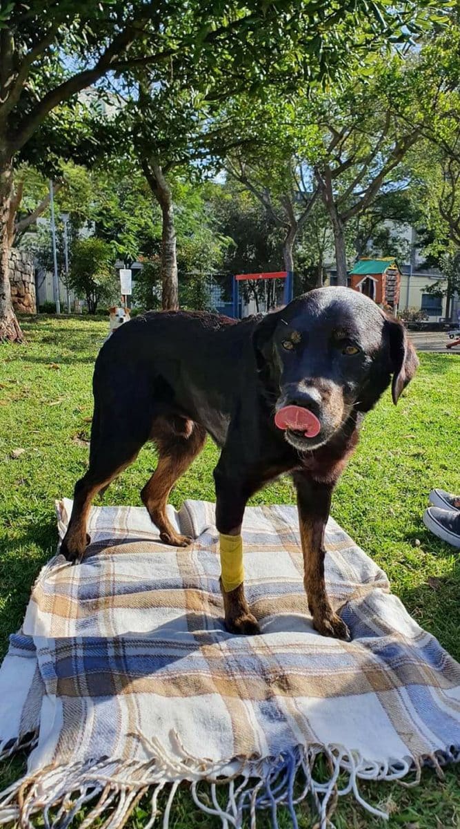 O cachorrinho agora não sofre mais. “Até logo amigo 🖤”, completou o abrigo.