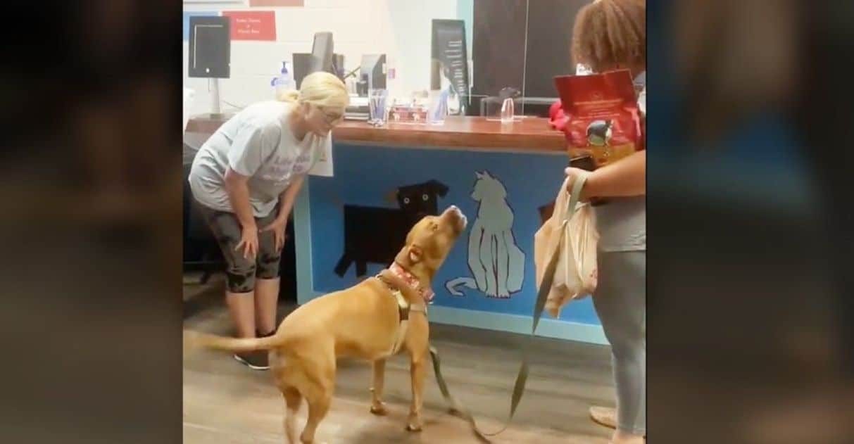 A agência de resgate compartilhou um vídeo adorável com Bowie descobrindo que estava sendo adotado, e o cachorrinho ficou visivelmente feliz ao descobrir a boa notícia, uivando e abanando o rabo.