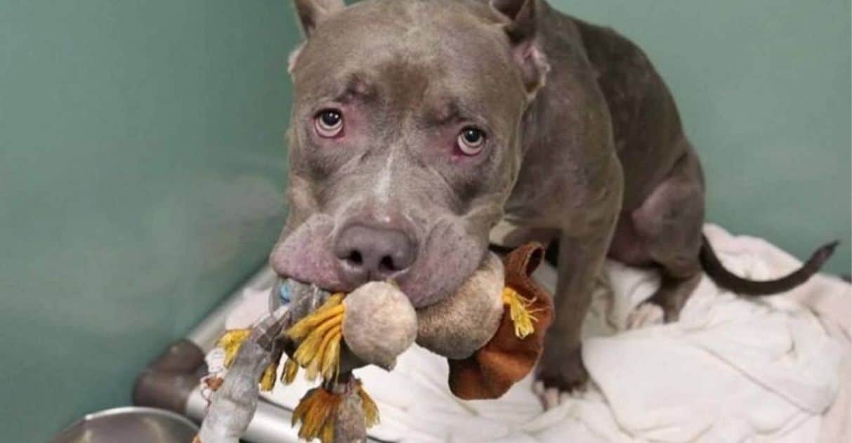 Quando ela foi deixada no abrigo, a pit bull estava absolutamente triste.