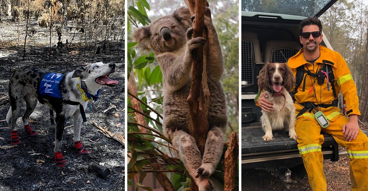 Vários cães tem sido mobilizados para ajudar no resgate a animais atingidos pelos incêndios na Austrália. Dentre eles estão Tayler, que já resgatou 8 coalas, e Bear, que foi abandonado ainda filhote e que não poupa energias no trabalho de resgate a coalas que sobreviveram ao fogo. Um trabalho difícil, árduo, porém necessário e glorioso.