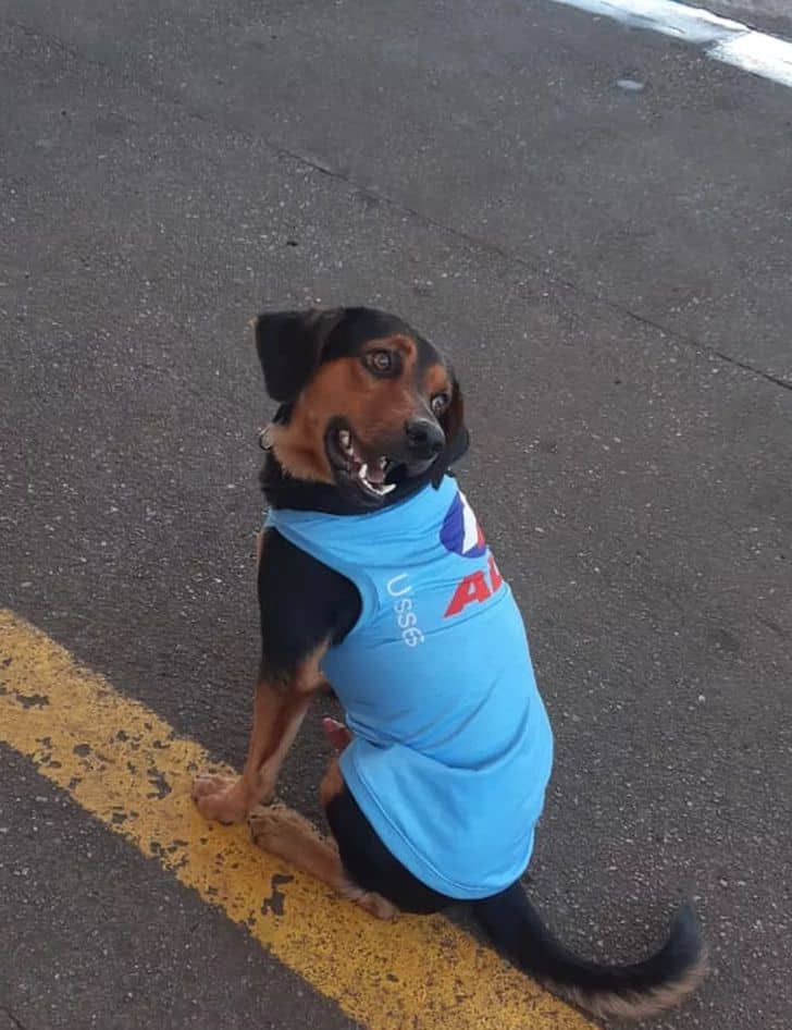 “O Ulisses entrou em nossas vidas para somar, pois não podemos mais chegar ao posto e não vê-lo”, disse o funcionário Seu Antonio, que fez um uniforme sob medida para o filhote.