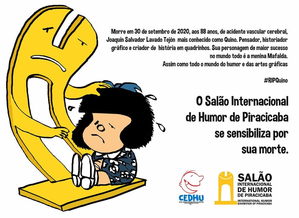 Foi belíssima e emocionante a homenagem da Associação dos Cartunistas do Brasil ao cartunista Quino, criador da amada Mafalda, que faleceu aos 88 anos na quarta-feira (30). Foi organizda uma inesquecível exposição virtual.