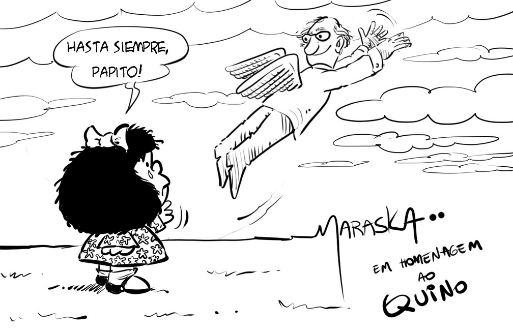 Sergio Más faz homenagem a Quino — Foto: Divulgação/Associação dos Cartunistas do Brasil Rose Araújo faz homenagem a Quino — Foto: Divulgação/Associação dos Cartunistas do Brasil Laerte faz cartum em homenagem a Quino — Foto: Divulgação/LaertePaulo Sergio Jindelt faz homenagem a Quino — Foto: Divulgação/Associação dos Cartunistas do Brasil