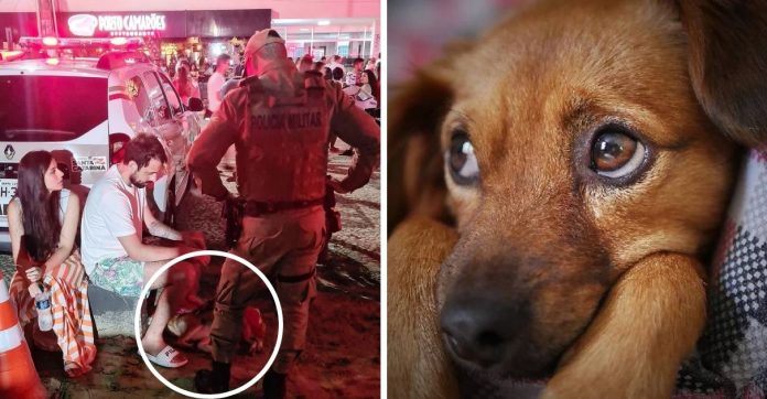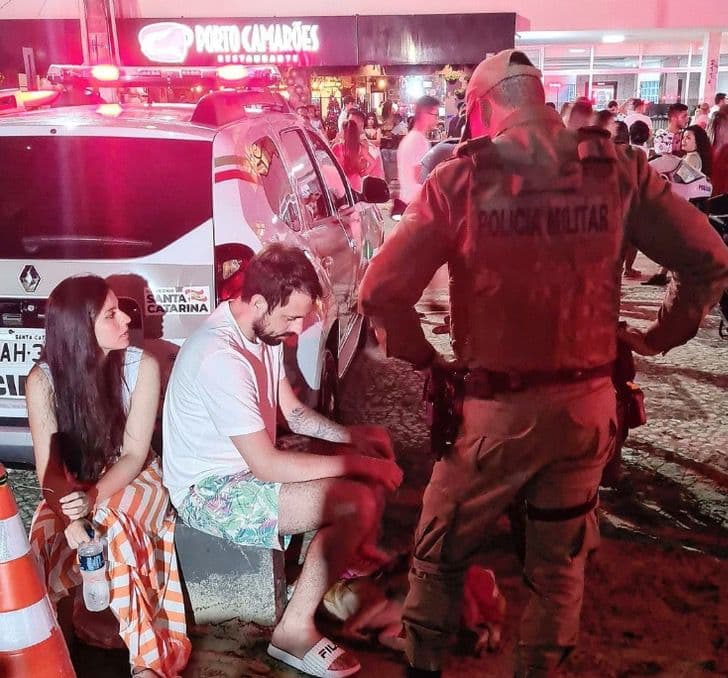 “Essa cena me chamou a atenção ontem. Não sei se você percebeu, mas ali, entre as pernas do menino, está um cachorrinho deitado . Pois bem. Logo após a contagem regressiva, esse casal viu esse cachorrinho atordoado na estrada, completamente perdido , correndo grande risco de ser atropelado ”, disse o policial Nicolás Vasconcelos Marques , da Polícia Militar de Santa Catarina.