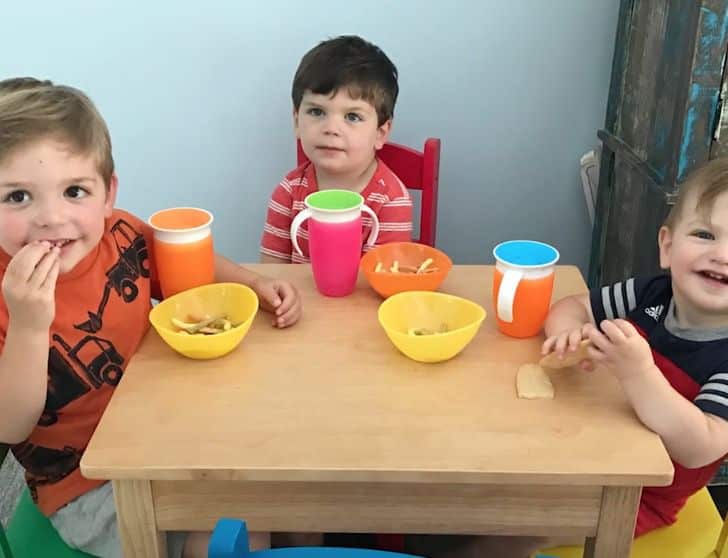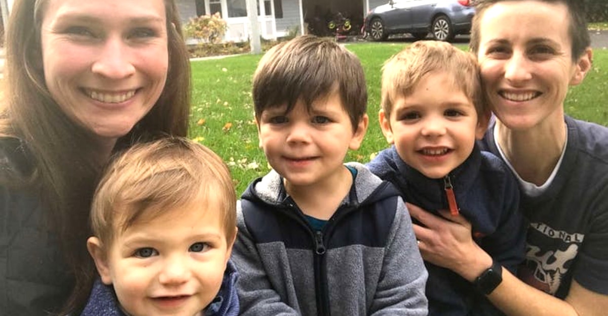 Um casal de Massachusetts agora são mães orgulhosas de três irmãos com menos de 4 anos.