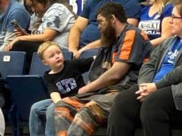 Trabalhador de mina de carvão viraliza ao levar filho para jogo de basquete logo após o trabalho