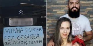 Pai chama atenção ao colar cartaz em carro pedindo paciência por dirigir devagar: ‘Minha esposa fez cesárea’
