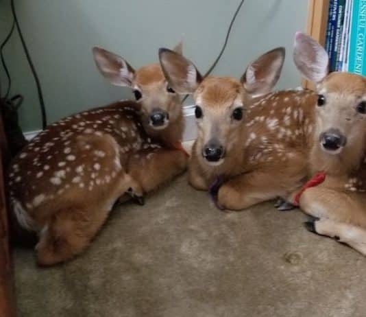 Mulher abre porta de sua casa para que 3 cervos possam dormir durante forte tempestade