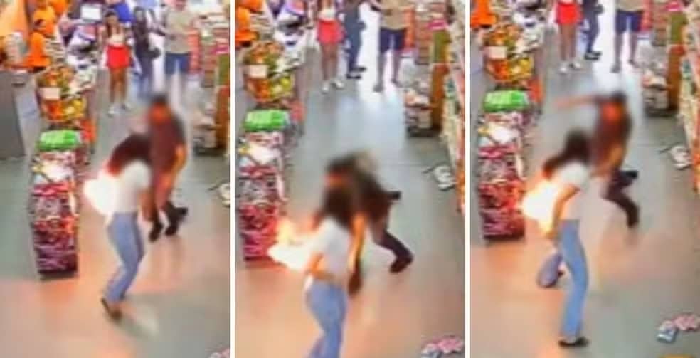 O caso aconteceu no último sábado (8), e as câmeras de segurança registraram tudo. Nas imagens, é possível ver o momento em que a mulher sente um forte calor e, em segundos, as chamas tomam conta do aparelho. Em pânico, ela sai correndo enquanto pessoas ao redor tentam ajudá-la.