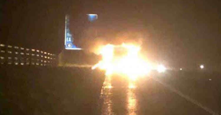 Uma fumaça começou a sair do motor. Quando o pai parou o veículo em um estacionamento, já era tarde demais e o clarão do capô ficou totalmente incontrolável.