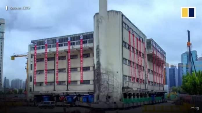 Foram necessários 18 dias para que o prédio de 7.000 toneladas, que fica em Shangai, fosse movido de lugar. O deslocamento foi concluído em 15 de outubro, mas um vídeo mostrando todo o processo divulgado esta semana na imprensa chinesa (assista abaixo).