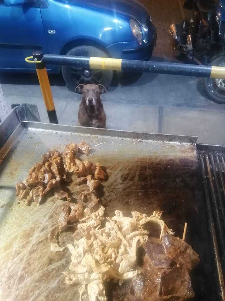 Todos os dias, uma hora depois do fim do expediente, um simpático cachorrinho chega à porta para receber seu prato diário recheado de carne e acompanhamentos, ele se tornou cliente fiel do local.