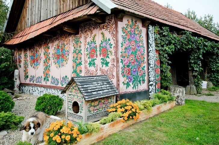 Trata-se de uma pequena cidade polonesa chamada Zalipie. Certo dia, alguém pintou uma flor no telhado para cobrir um buraco. A ventilação era fraca na época e as manchas de fuligem eram comuns na maioria das casas. Contudo, a partir dessa pintura, todas as casas passaram a ter as suas marcas camufladas com flores até que as casas estivessem completamente cobertas por elas. As pinturas não se limitaram às casas: pontes, igrejas, celeiros, tudo passou a contar com flores em suas fachadas.