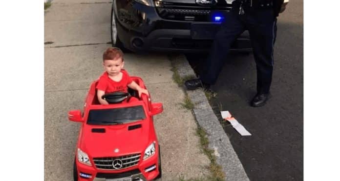 A polícia de Malden, que fica no subúrbio de Boston (Massachusetts) disse que o pequeno Grayson Salerno foi flagrado na terça-feira (31) dirigindo um Mercedes conversível de brinquedo pela calçada.