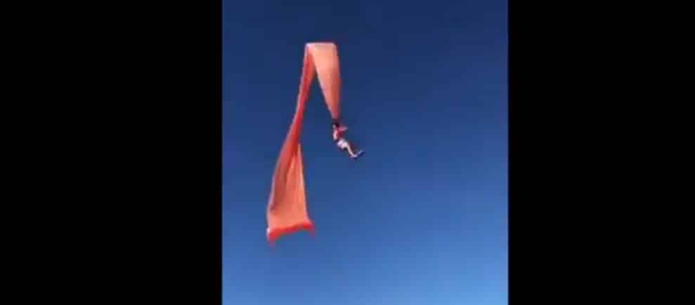 Os vídeos que circulam pelas redes socias mostram que ela voou por cerca de 30 segundos, até ser resgatada.