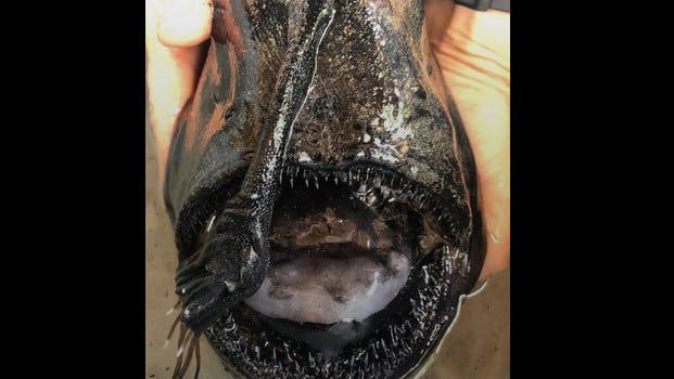 O peixe em questão tem cerca de 45 centímetros de comprimento e foi identificado como um peixe-pescador, que é da família Himantolophidae, segundo a emissora “CBSN Los Angeles”. Embora sua existência não seja rara, é bastante incomum localizá-lo sem qualquer dano na costa. Ele foi encaminhado para o Departamento de Pesca e Vida Selvagem da Califórnia.