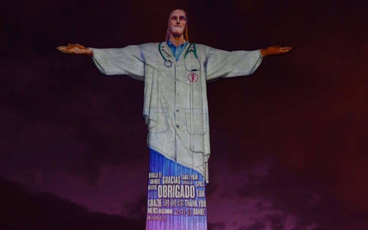 Cristo, aclamado pelos cristãos como “médico dos médicos”, recebeu hoje uma projeção que o fez vestir jaleco e colocar estetoscópio em volta do pescoço para homenagear os trabalhadores na área de saúde.