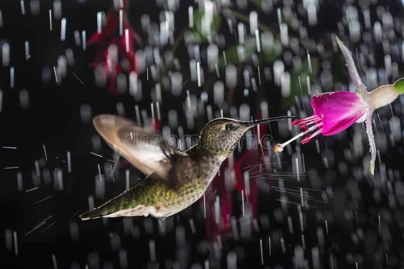 Enquanto o meu mundo ruía, como se por mágica ou encantamento, um beija-flor se aproximou a uns três metros janela. Ele, sim, banhava-se na chuva. Sob as luzes que brotavam da rua e os raios que cortavam o céu, suas penas luziam num colorido mágico que roubou o meu ar. Pleno, absoluto… fantástico.
