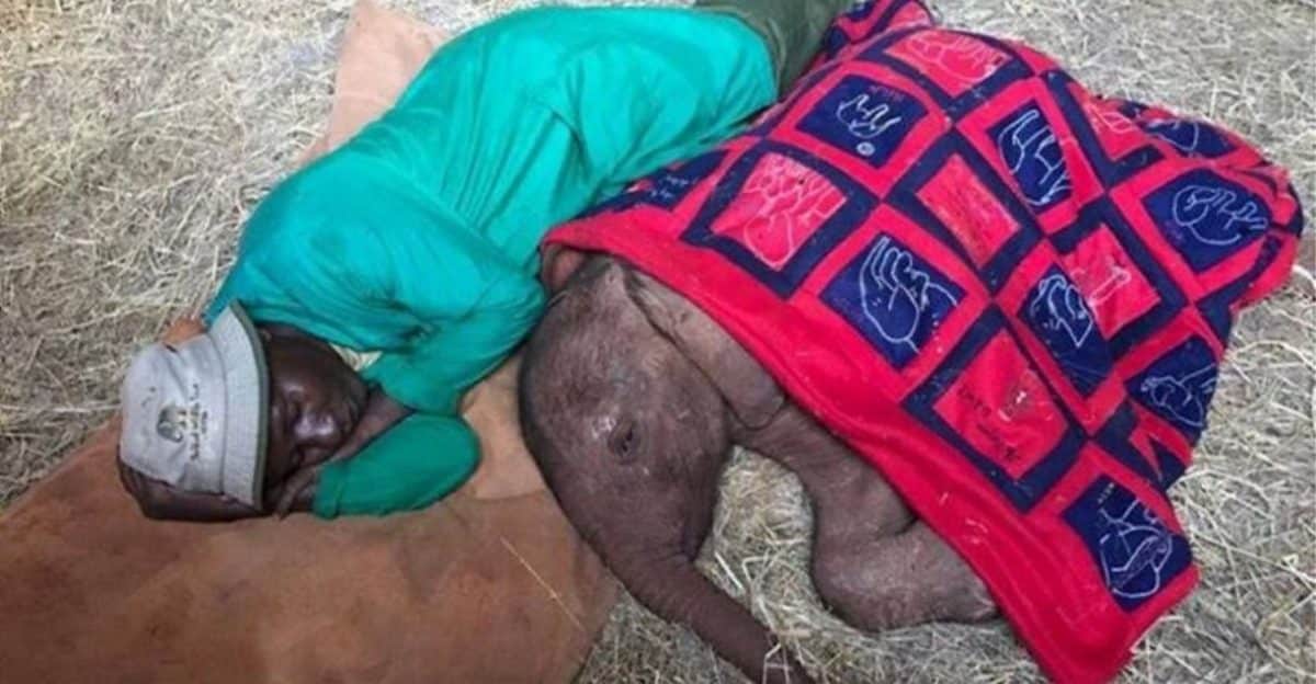 Um bom exemplo disso aconteceu ainda na primeira semana do acolhimento do elefante: ele chorava muito durante o dia, e não conseguia dormir à noite. O cuidador então teve uma ideia: deitar ao lado do animal e cobri-lo com uma manta.
