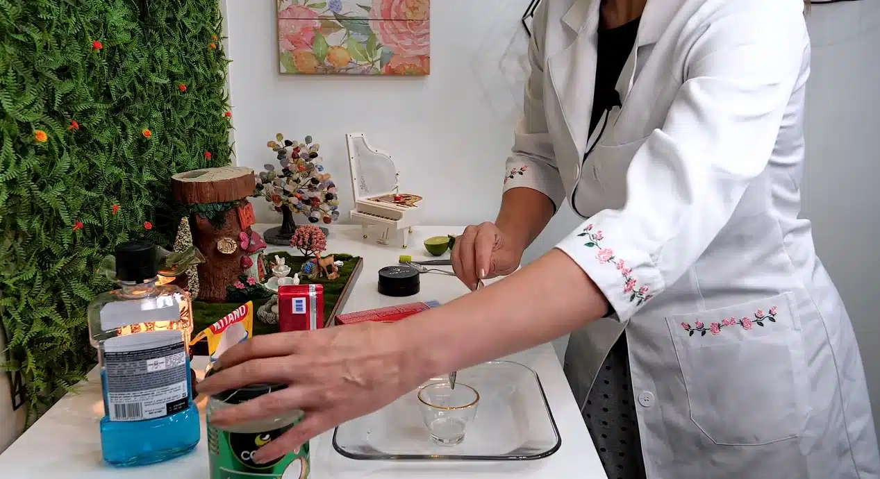 - Coloque a mistura resultante na boca (cuidado para não engolir!);