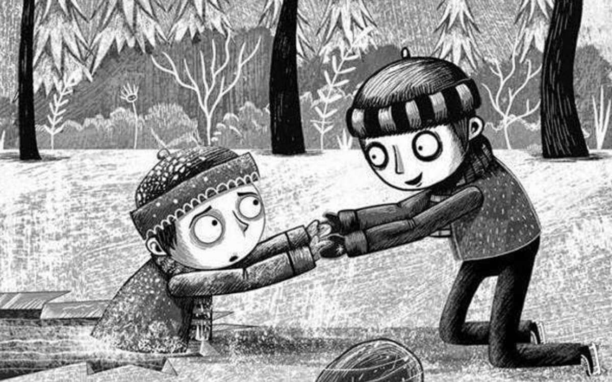Duas crianças estavam patinando a manhã toda em um lago congelado quando, de repente, o gelo se rompeu e um deles caiu na água. A corrente interna a desloca alguns metros abaixo da parte congelada, então, para salvá-la, a única opção era quebrar a camada que a cobria.